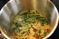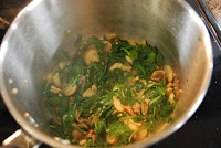 Agora é hora de colocar o espinafre, não se assuste parece que é muito mas é tudo ilusão :) Quando o espinafre estiver mais escuro e molinho, adicione o leite e a salsinha.