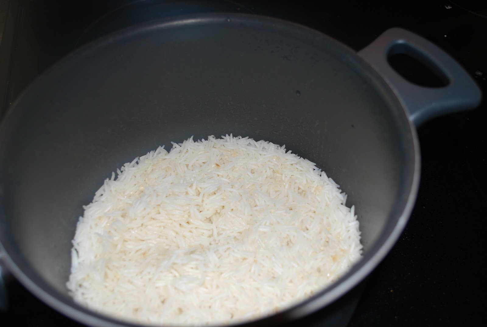 Eu não tinha arroz de risotto aqui em casa, então usei basmati. Cozinhe o arroz normalmente, só não coloque muito sal.
