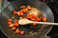 Numa frigideira frite o alho com manteiga, adicione o tomate e frite mais um pouquinho para que ele amoleça.